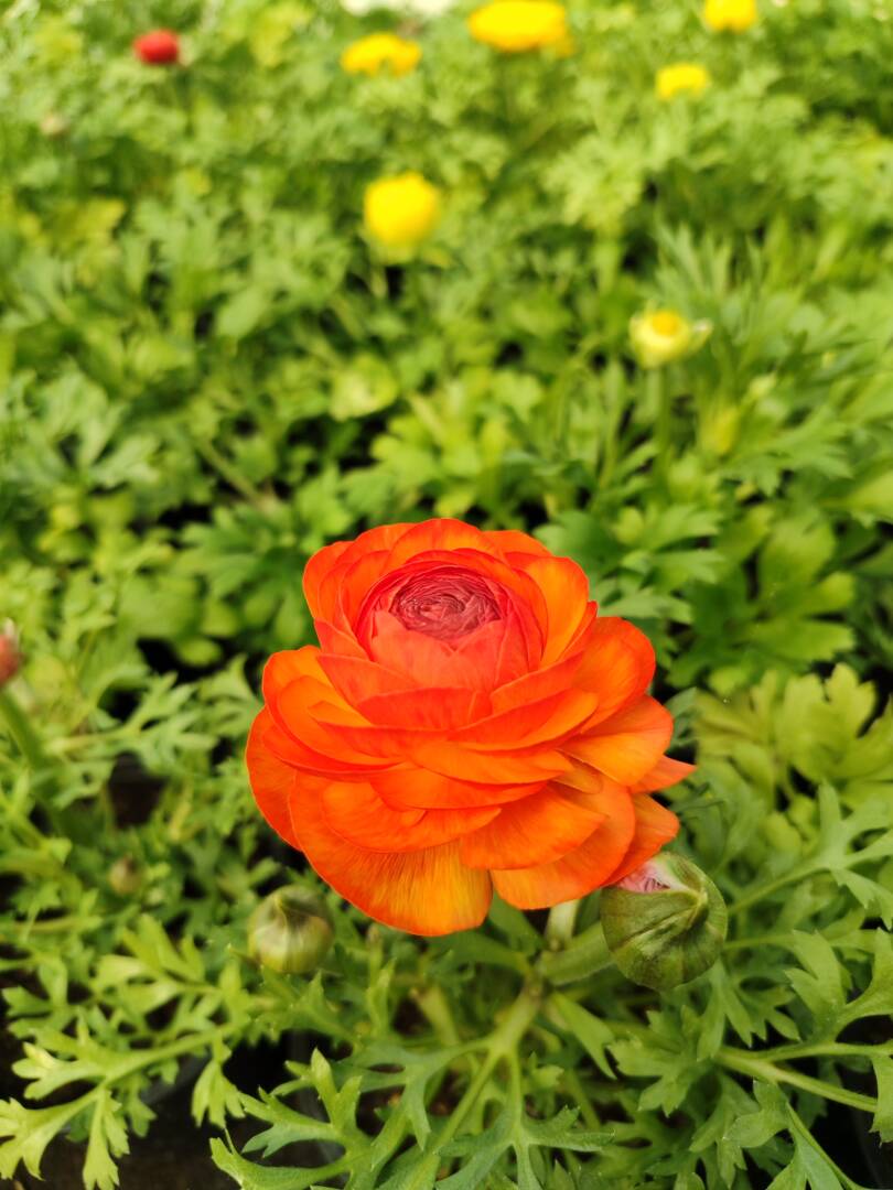 Цветовете на ранункулуса са розетковидни и наподобяват миниатюрни рози или божури. Срещат се в различни цветове – бяло, жълто, розово, червено и оранжево. Цъфтежът е продължителен и придава свежест и цвят на всяко пространство през пролетните месеци.